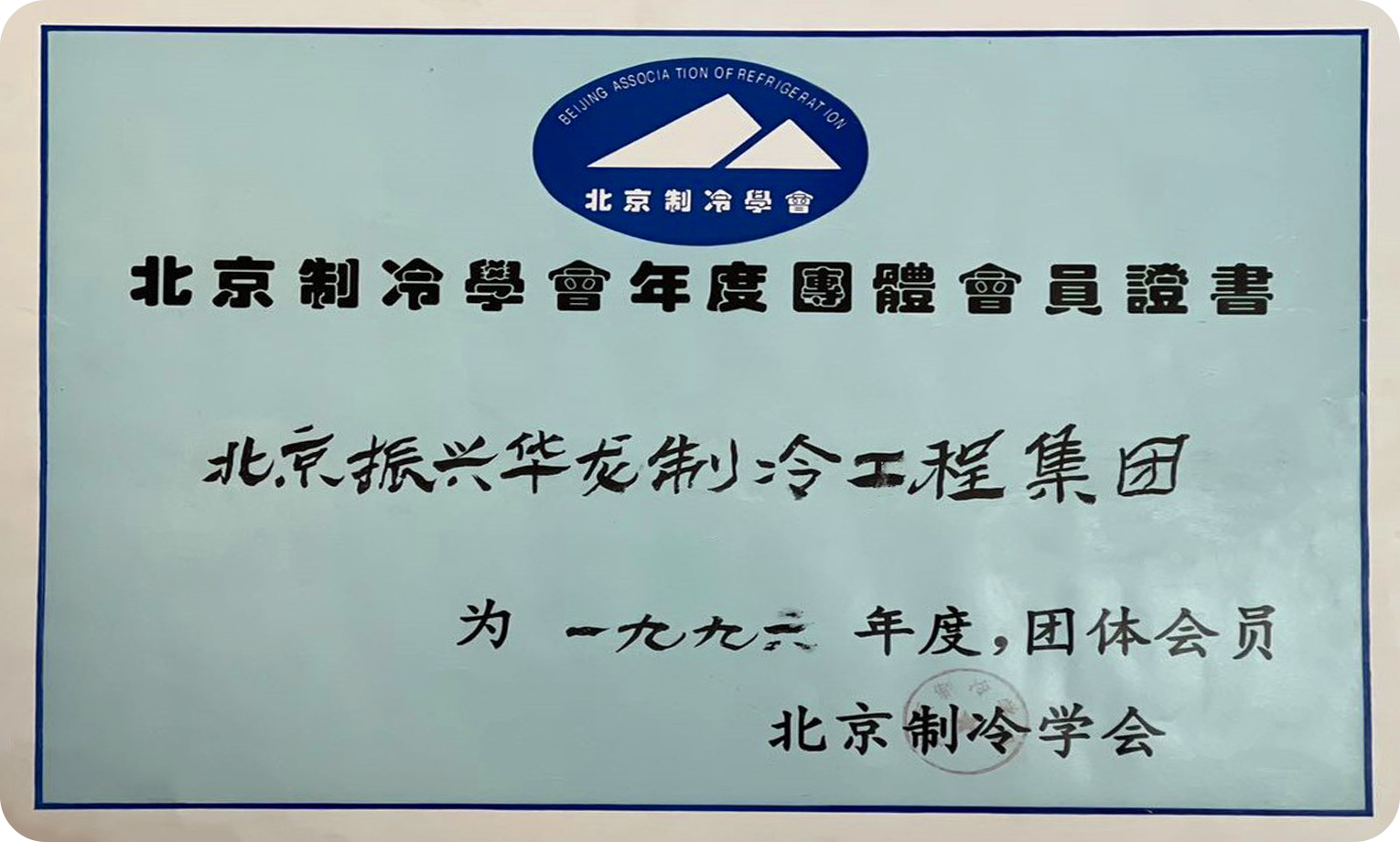 1996年5月,集團被中國制冷空調工業學會正式接納為會員。